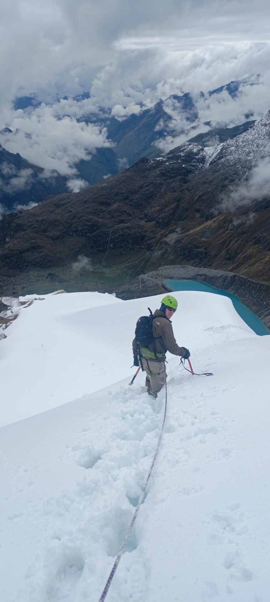 El Ichíq Ulta (5,350 m) es una de las montañas jóvenes más accesibles de la Cordillera Blanca, ideal para quienes buscan su primera experiencia real en montañismo técnico, con secciones de glaciar y ligeros tramos de escalada en hielo.